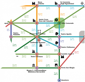La metromappa realizzata per il Comune di Lecce mostra 26 punti di interesse (POI), di cui: